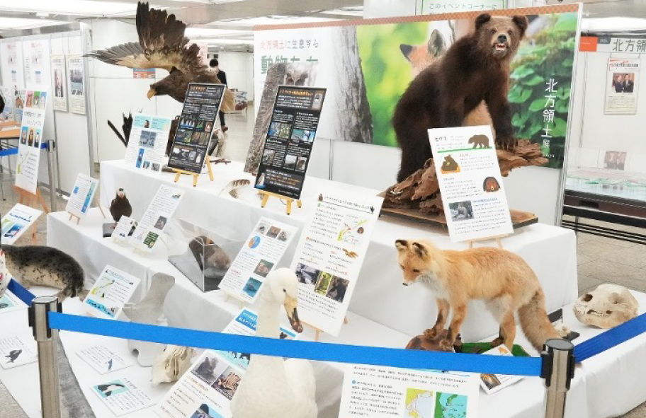 北方四島に生息する動物たちの剥製を展示します。まるで生きているかのような野生動物のリアルな剥製に、恵まれた大自然の中で生きる動物達の息吹と迫力を存分に感じてください。動物達について学べるパネルとともにご紹介します。