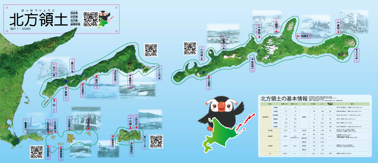 ご来場の皆さまに北方領土問題をより身近に感じていただけるよう、過去から現在までの北方四島(択捉島・国後島・色丹島・歯舞群島)の状況、および北方領土問題全般に関するパネルや近隣地域を紹介するパネルを多数展示します。